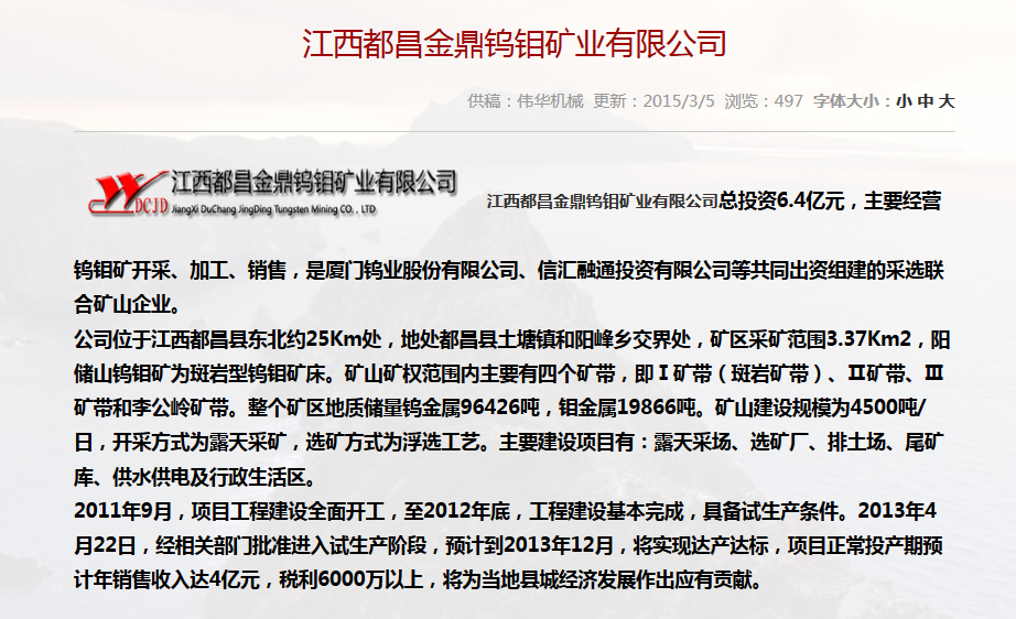 合作單位:長(zhǎng)青鎢鉬有限責(zé)任公司