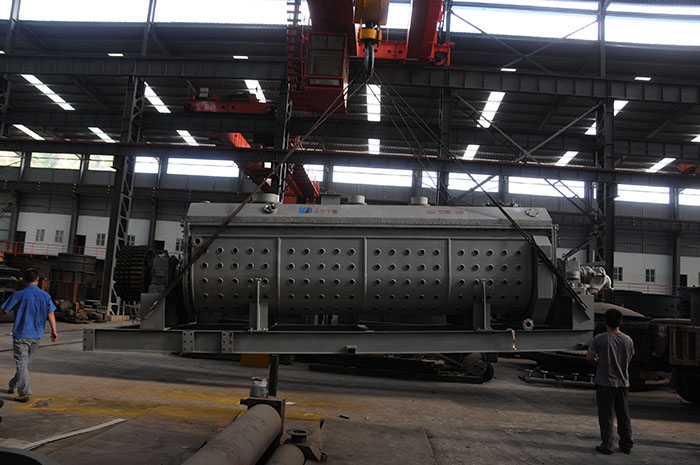 WH110中中空旋葉燥機(jī)是三門(mén)峽偉華機(jī)械生產(chǎn)的迄今為止全球第一臺(tái)鈦鋼制作(TA2+Q345R)的中中空旋葉干燥機(jī),現(xiàn)已全部裝配、調(diào)試完畢,正在進(jìn)行發(fā)貨前準(zhǔn)備工作。