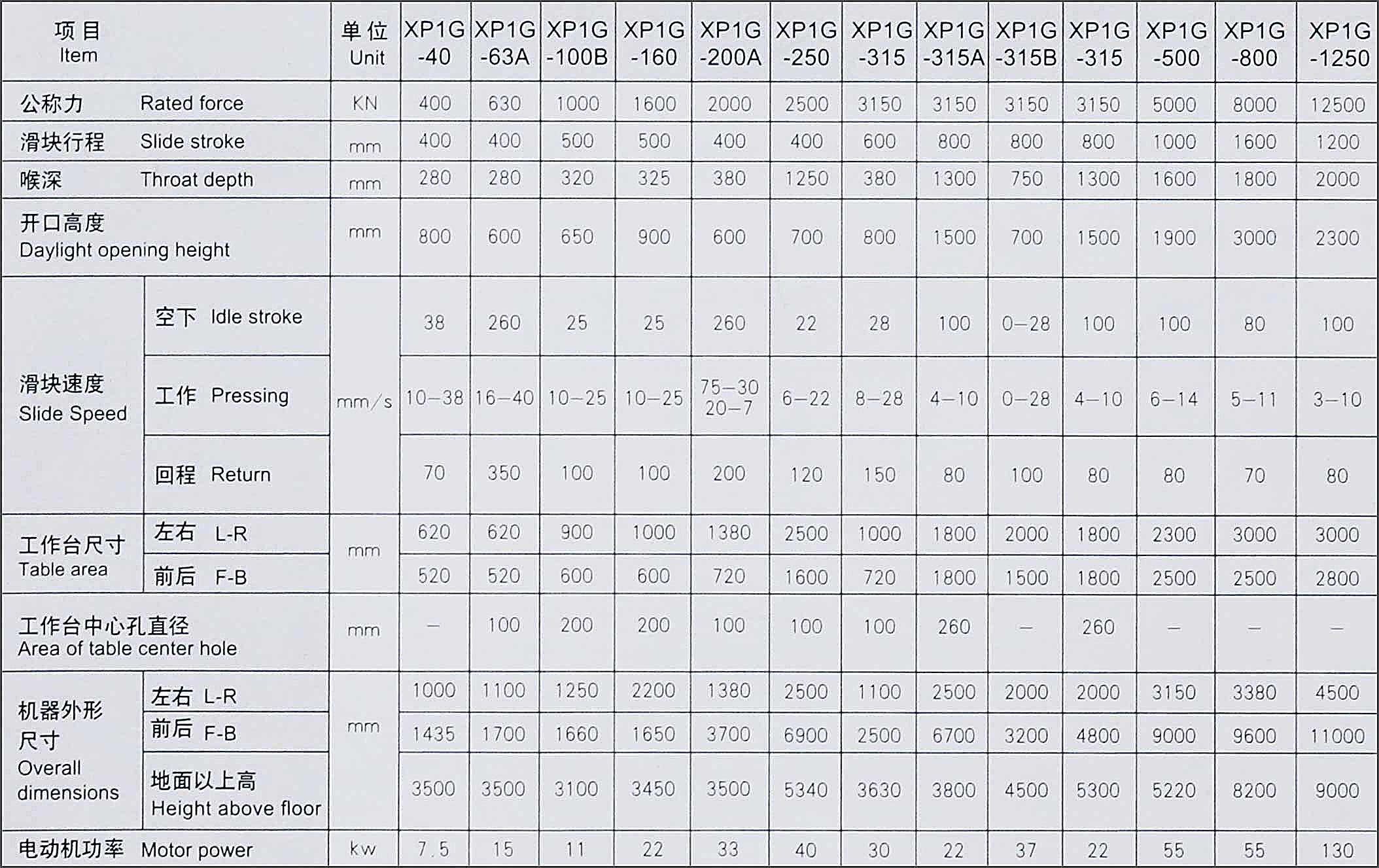 C型單臂式機身結(jié)構(gòu),操作方便,液壓系統(tǒng)置身于機身內(nèi)部,工作壓力行程可在規(guī)定范圍調(diào)節(jié)。